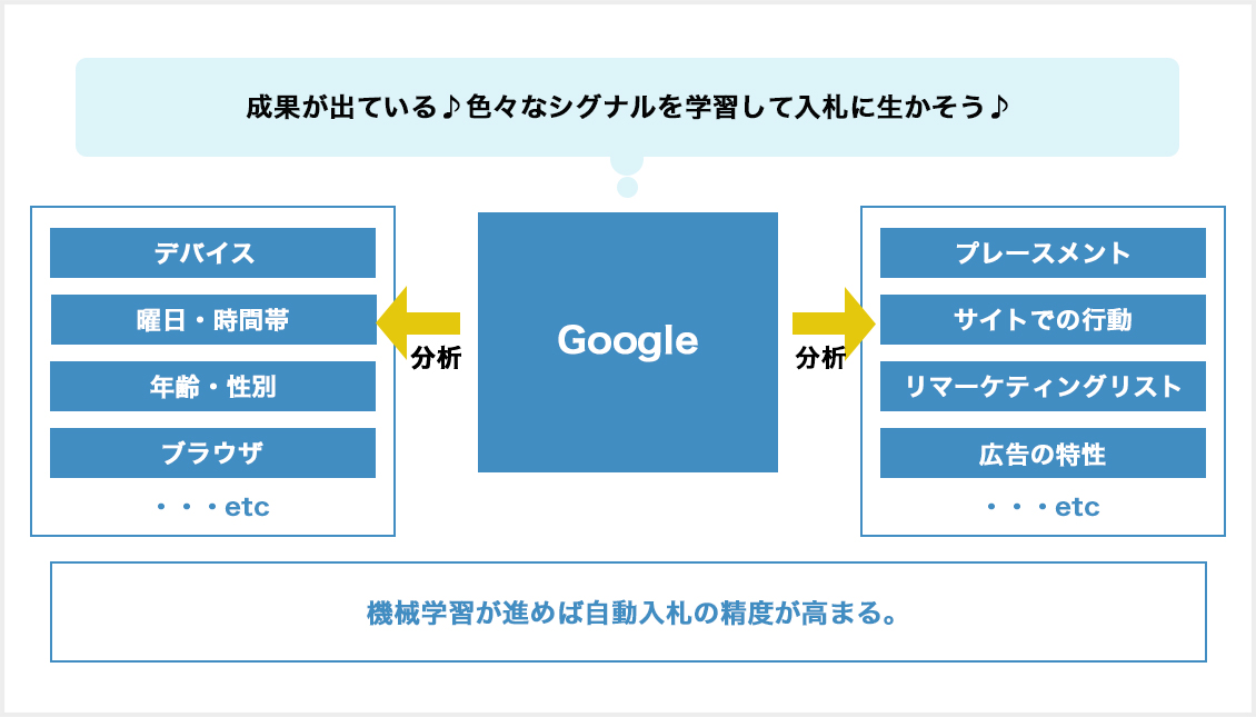 なぜこのような結果が得られるのでしょうか。それは最適化を進めた過程で、Googleがデータを分析し、入札調整に生かすからです。