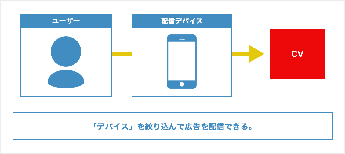 第二に違う側面からのターゲティングも可能。例えば、見込み客がスマートフォンユーザーならどうか。この場合、スマートフォンのみで広告を表示できます。